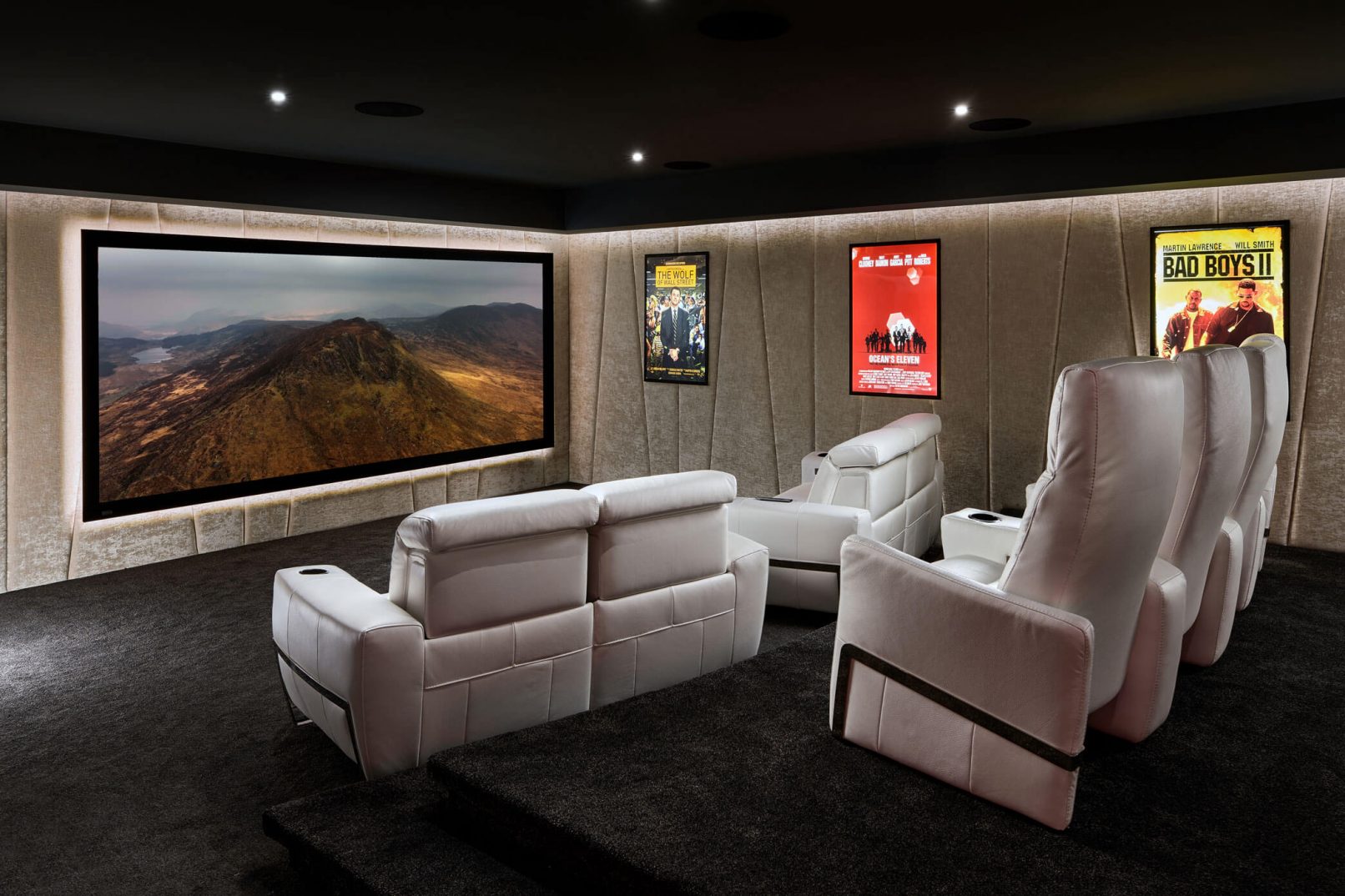 This incredible install in the North East started life as a simple one room solution and gradually evolved into a full-blown Savant smart home. The main feature of the project is undoubtedly this epic home cinema ‘stroke’ games room which was a completely blank canvas when we took the project on. Everything you see in this room has been managed in-house by our team, from the initial design through to joinery, flooring, decoration and more.